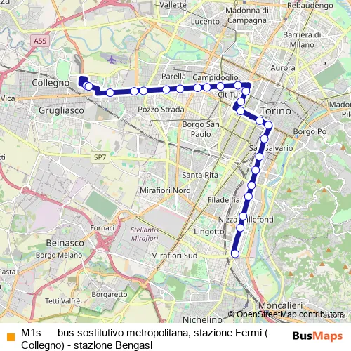 Click here to view the nearest M1s - bus sostitutivo metropolitana, stazione Fermi (Collegno) - stazione Bengasi bus stop.