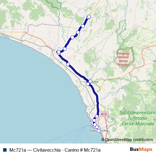 Click here to view the nearest Mc721a - Civitavecchia - Canino # Mc721a bus stop.
