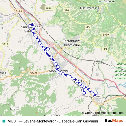 Bus Miv01 - Levane-Montevarchi-Ospedale-San Giovanni in Montevarchi: Stops & Timetable