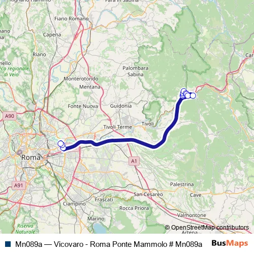 Services on the Mn089a - Vicovaro - Roma Ponte Mammolo # Mn089a bus start at 05:35 on lunedì, martedì, mercoledì, giovedì, venerdì.