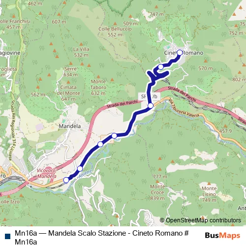 Services on the Mn16a - Mandela Scalo Stazione - Cineto Romano # Mn16a bus start at 18:40 on martedì, giovedì, venerdì.