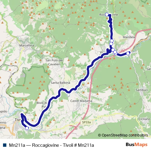 Bus Mn211a - Roccagiovine - Tivoli # Mn211a in Vicovaro: Stops & Timetable