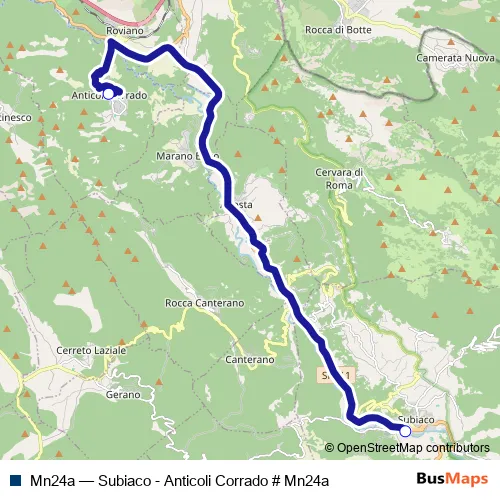 Click here to view the nearest Mn24a - Subiaco - Anticoli Corrado # Mn24a bus stop.