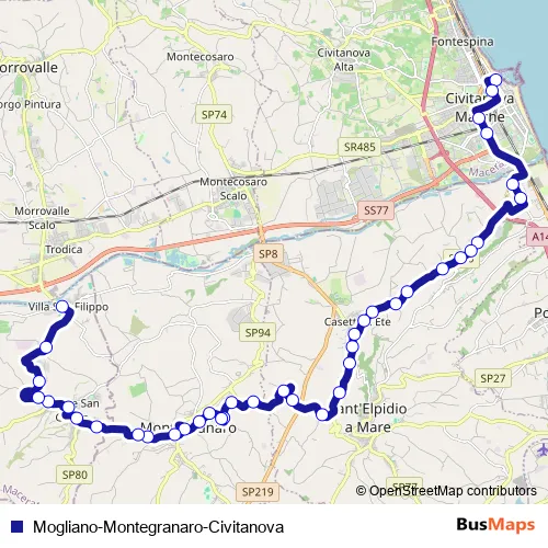 Mogliano-Montegranaro-Civitanova bus Route Map