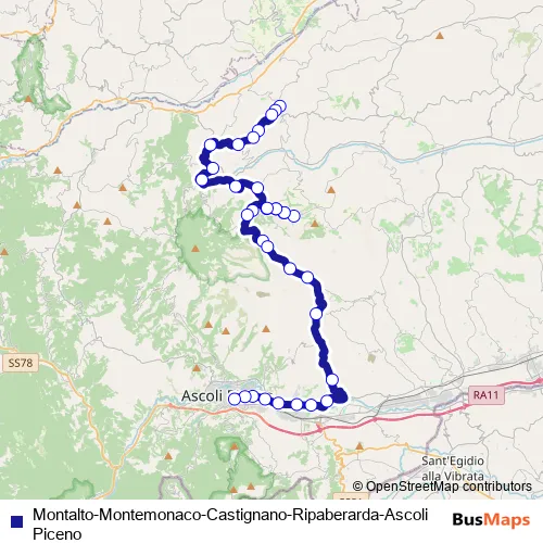 Additional information: Montalto-Montemonaco-Castignano-Ripaberarda-Ascoli Piceno has 34 stops and the total trip duration