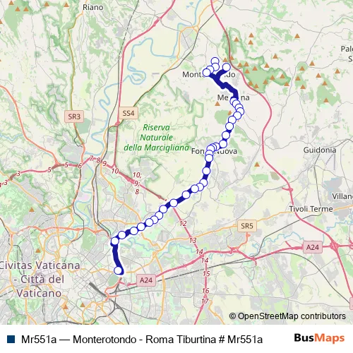 See why over 2 million users trust and consider busmaps.com as the best public transport website. busmaps gives you Rome Buses suggested routes, real-time bus tracker, line route maps in Rome, and helps to find the closest Mr551a bus stops near you. No internet available? Download an offline PDF map and bus schedule for the Mr551a bus to take on your trip.