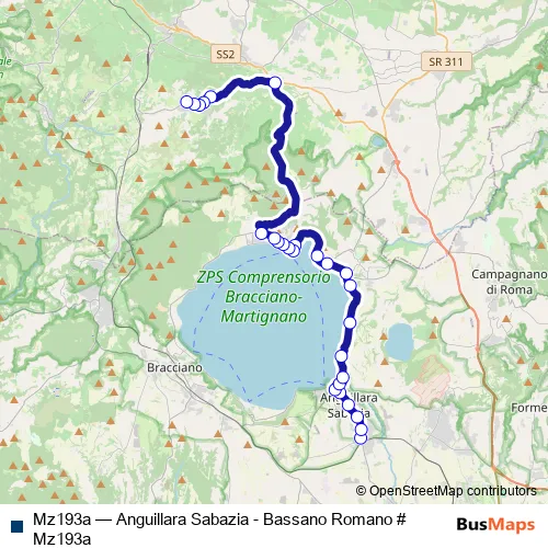 Click here to view the nearest Mz193a - Anguillara Sabazia - Bassano Romano # Mz193a bus stop.