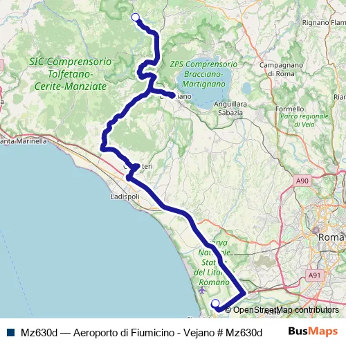 Bus Mz630d - Aeroporto di Fiumicino - Vejano # Mz630d in Vejano: Stops & Timetable