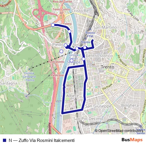 Bus N - Zuffo Via Rosmini Italcementi Schedule in Trento