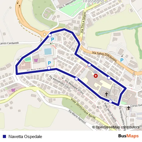 The first stop of the Navetta Ospedale bus route is Ospedale and the last stop is Ospedale. Navetta Ospedale (Navetta Ospedale) is operational during tutti i giorni.