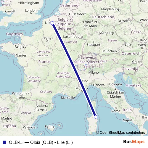Click here to view the nearest OLB-Lil - Olbia (OLB) - Lille (Lil) air stop.