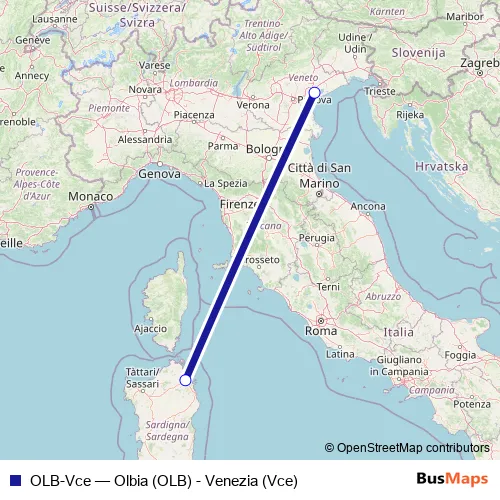 Click here to view the nearest OLB-Vce - Olbia (OLB) - Venezia (Vce) air stop.