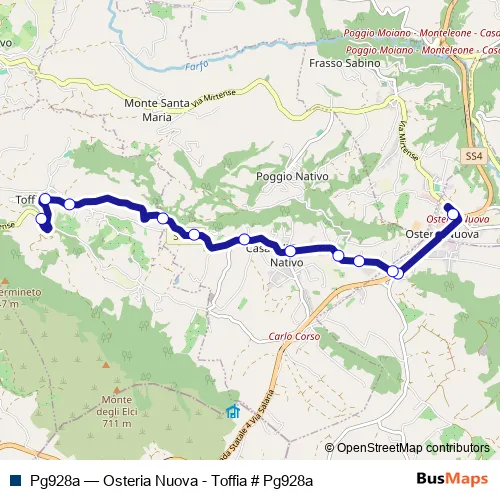 Services on the Pg928a - Osteria Nuova - Toffia # Pg928a bus start at 14:15 on lunedì, martedì, mercoledì, giovedì, venerdì.