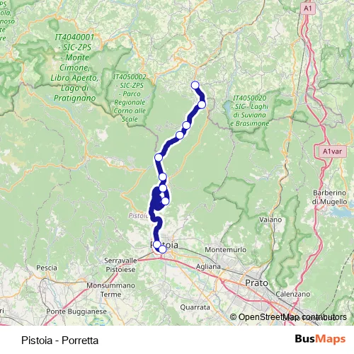 Additional information: Pistoia - Porretta has 10 stops and the total trip duration for this route is approximately 54 minutes.