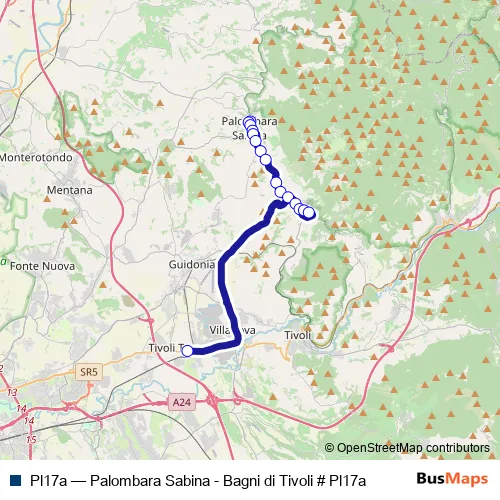 Bus Pl17a - Palombara Sabina - Bagni di Tivoli # Pl17a: Full Schedule in Palombara Sabina