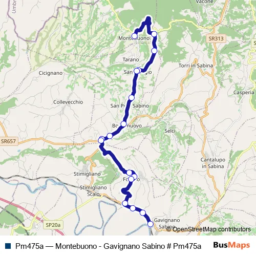 Bus Pm475a - Montebuono - Gavignano Sabino # Pm475a in Forano: Stops & Timetable