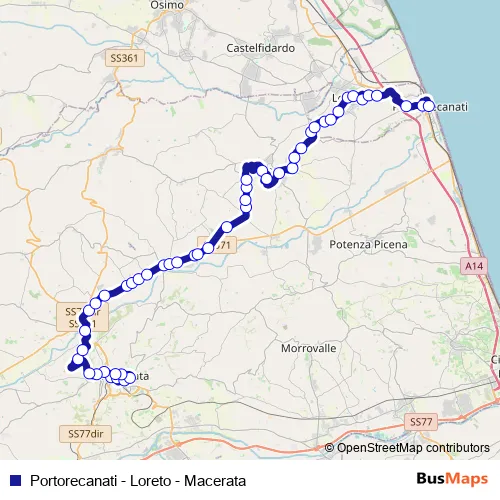 Portorecanati (P.Za Brancondi). Portorecanati - Loreto - Macerata (Portorecanati - Loreto - Macerata) is operational during tutti i giorni.