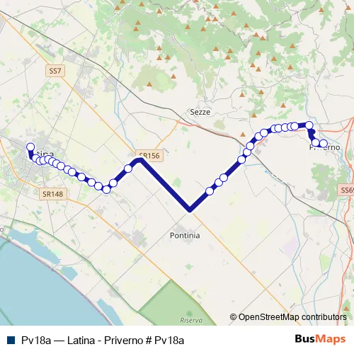 See why over 2 million users trust and consider busmaps.com as the best public transport website. busmaps gives you Latina Buses suggested routes, real-time bus tracker, line route maps in Latina, and helps to find the closest Pv18a bus stops near you. No internet available? Download an offline PDF map and bus schedule for the Pv18a bus to take on your trip.