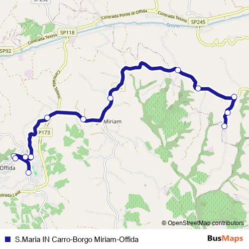 The first stop of the S.Maria IN Carro-Borgo Miriam-Offida bus route is S. Maria IN Carro and the last stop is