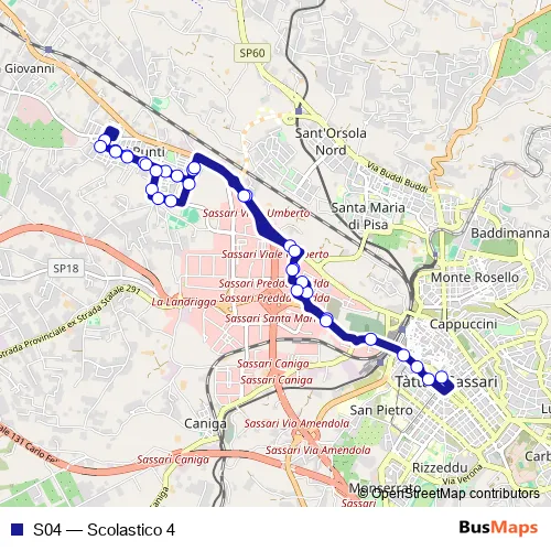 See why over 2 million users trust and consider busmaps.com as the best public transport website. busmaps gives you Sassari Buses suggested routes, real-time bus tracker, line route maps in Sassari, and helps to find the closest S04 bus stops near you. No internet available? Download an offline PDF map and bus schedule for the S04 bus to take on your trip.