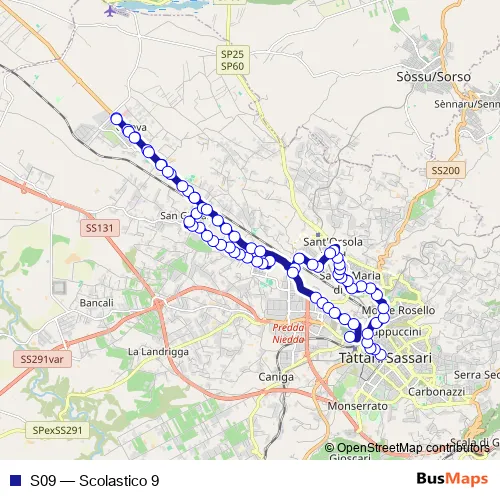 See why over 2 million users trust and consider busmaps.com as the best public transport website. busmaps gives you Sassari Buses suggested routes, real-time bus tracker, line route maps in Sassari, and helps to find the closest S09 bus stops near you. No internet available? Download an offline PDF map and bus schedule for the S09 bus to take on your trip.