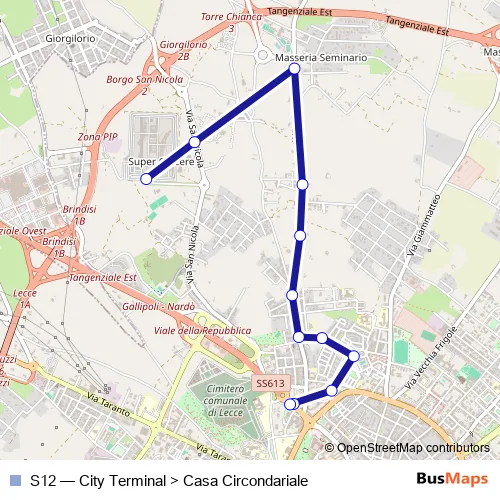 See why over 2 million users trust and consider busmaps.com as the best public transport website. busmaps gives you Lecce Buses suggested routes, real-time bus tracker, line route maps in Lecce, and helps to find the closest S12 bus stops near you. No internet available? Download an offline PDF map and bus schedule for the S12 bus to take on your trip.