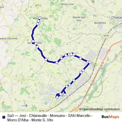 Click here to view the nearest Sa3 - Jesi - Chiaravalle - Monsano - SAN Marcello - Morro D'Alba - Monte S. Vito bus stop.