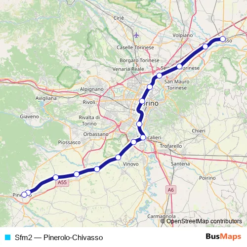 See why over 2 million users trust and consider busmaps.com as the best public transport website. busmaps gives you Turin Rail Services suggested routes, real-time bus tracker, line route maps in Turin, and helps to find the closest Sfm2 rail stops near you. No internet available? Download an offline PDF map and bus schedule for the Sfm2 rail to take on your trip.