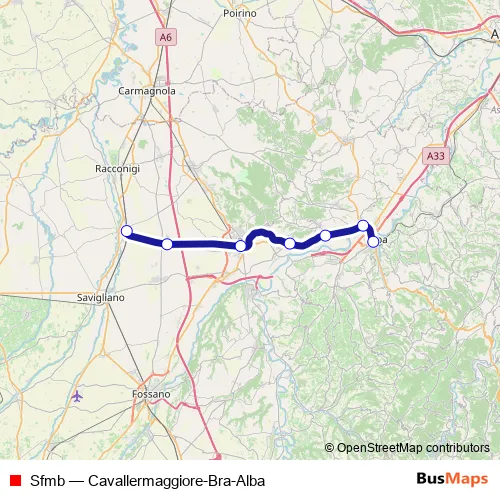 The first stop of the Sfmb rail route is Cavallermaggiore and the last stop is Alba. Sfmb (Cavallermaggiore-Bra-Alba) is operational during tutti i giorni.