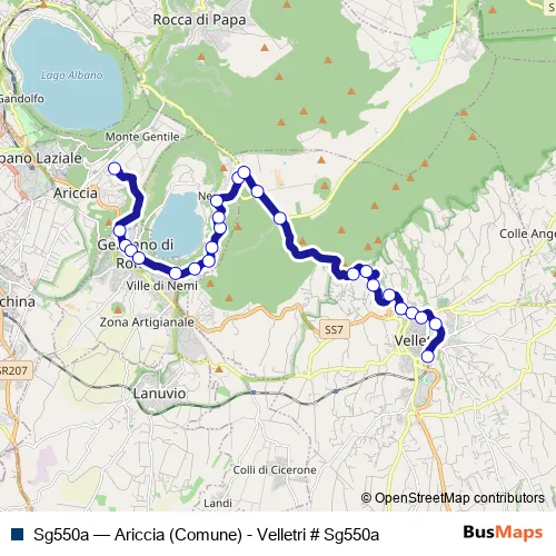 See why over 2 million users trust and consider busmaps.com as the best public transport website. busmaps gives you Nemi Buses suggested routes, real-time bus tracker, line route maps in Nemi, and helps to find the closest Sg550a bus stops near you. No internet available? Download an offline PDF map and bus schedule for the Sg550a bus to take on your trip.