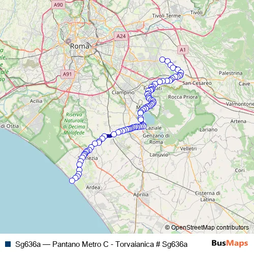 Bus Sg636a - Pantano Metro C - Torvaianica # Sg636a in Pomezia: Stops & Timetable