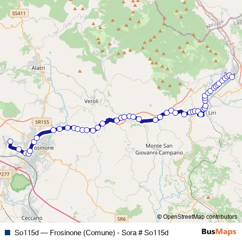 See why over 2 million users trust and consider busmaps.com as the best public transport website. busmaps gives you Frosinone Buses suggested routes, real-time bus tracker, line route maps in Frosinone, and helps to find the closest So115d bus stops near you. No internet available? Download an offline PDF map and bus schedule for the So115d bus to take on your trip.