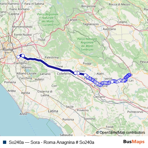 Bus So240a - Sora - Roma Anagnina # So240a in Frosinone: Stops & Timetable