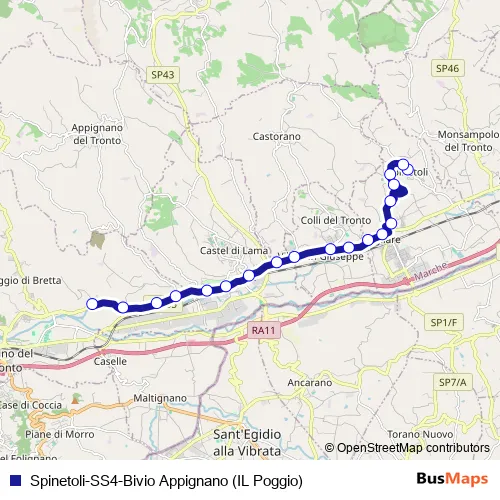Spinetoli-SS4-Bivio Appignano (IL Poggio) bus Route Map