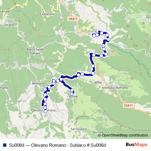 Click here to view the nearest Su006d - Olevano Romano - Subiaco # Su006d bus stop.