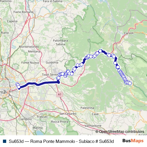 Bus Su653d - Roma Ponte Mammolo - Subiaco # Su653d: Full Schedule in Tivoli
