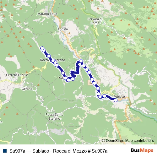 Services on the Su907a - Subiaco - Rocca di Mezzo # Su907a bus start at 10:30 on giovedì, venerdì.