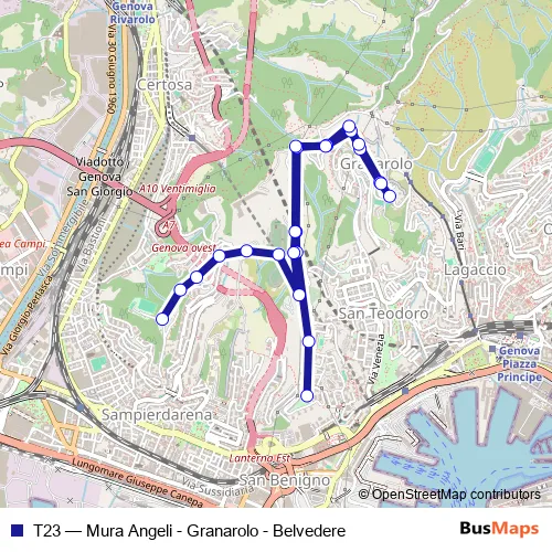 Bus T23 - Mura Angeli - Granarolo - Belvedere Schedule in Genoa