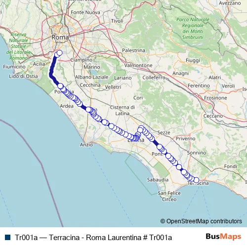 Click here to view the nearest Tr001a - Terracina - Roma Laurentina # Tr001a bus stop.