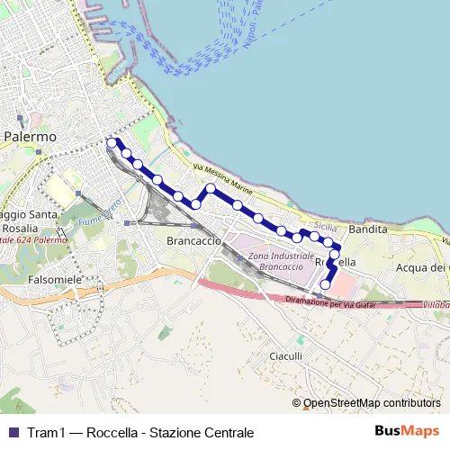 Tram Tram1 - Roccella - Stazione Centrale Schedule in Palermo