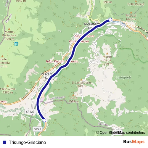 Additional information: Trisungo-Grisciano has 2 stops and the total trip duration for this route is approximately 20 minutes.