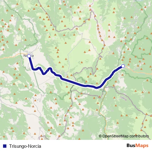 The first stop of the Trisungo-Norcia bus route is Trisungo - Distributore Brandi and the last stop is Norcia Porta Ascolana. Trisungo-Norcia (Trisungo-Norcia) is operational during tutti i giorni.
