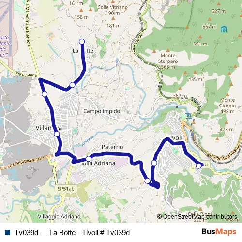 Services on the Tv039d - La Botte - Tivoli # Tv039d bus start at 07:10 on lunedì, martedì, mercoledì, giovedì, venerdì, sabato.
