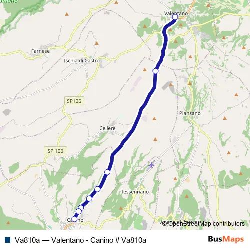See why over 2 million users trust and consider busmaps.com as the best public transport website. busmaps gives you Canino Buses suggested routes, real-time bus tracker, line route maps in Canino, and helps to find the closest Va810a bus stops near you. No internet available? Download an offline PDF map and bus schedule for the Va810a bus to take on your trip.