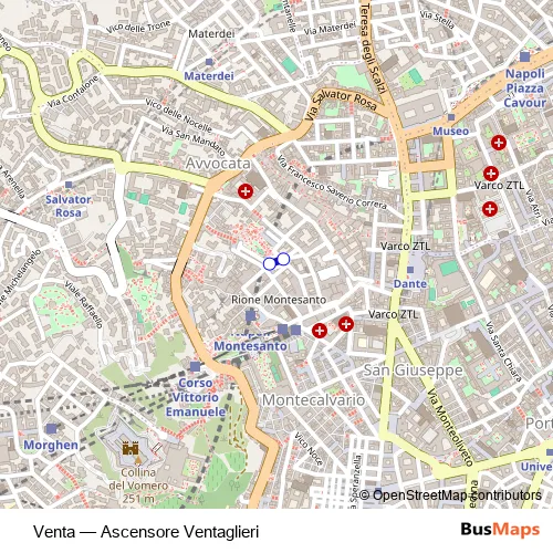 The first stop of the Venta bus route is Venta Asc1 and the last stop is Venta Asc. Venta (Ascensore Ventaglieri) is operational during tutti i giorni.