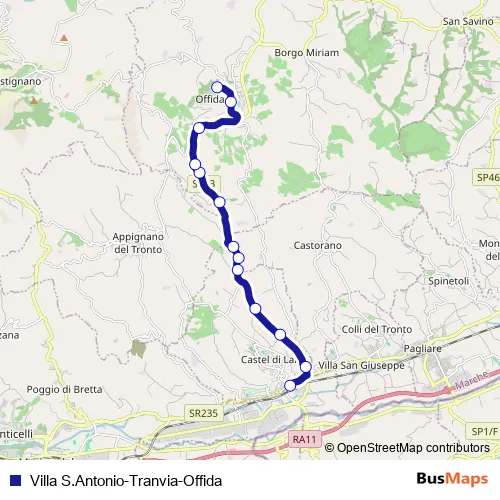 Start Spa Villa S.Antonio-Tranvia-Offida bus Route Map