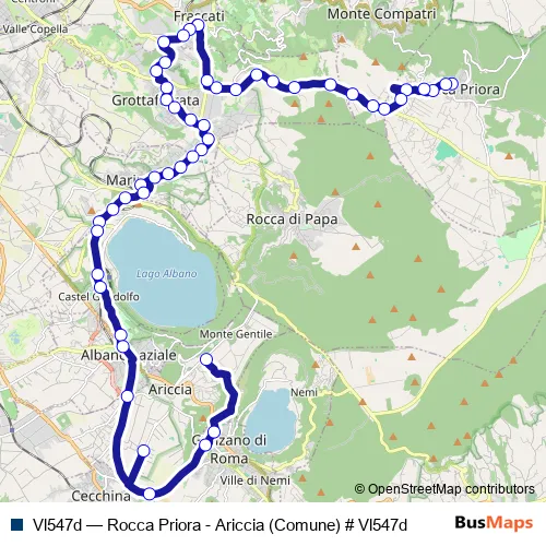 See why over 2 million users trust and consider busmaps.com as the best public transport website. busmaps gives you Grottaferrata Buses suggested routes, real-time bus tracker, line route maps in Grottaferrata, and helps to find the closest Vl547d bus stops near you. No internet available? Download an offline PDF map and bus schedule for the Vl547d bus to take on your trip.