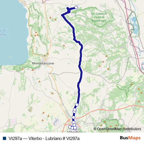Services on the Vt297a - Viterbo - Lubriano # Vt297a bus stop at 18:04 on martedì, giovedì, venerdì.