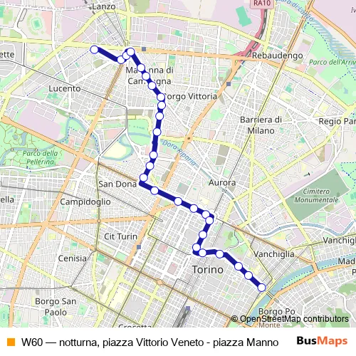 Bus W60 - notturna, piazza Vittorio Veneto - piazza Manno Schedule in Turin