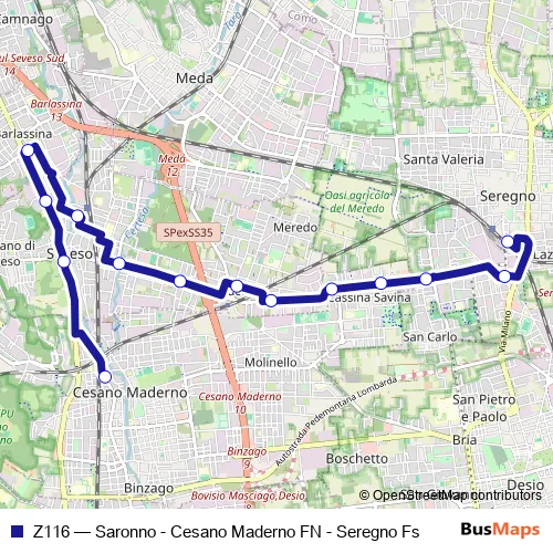 Click here to view the nearest Z116 - Saronno - Cesano Maderno FN - Seregno Fs bus stop.